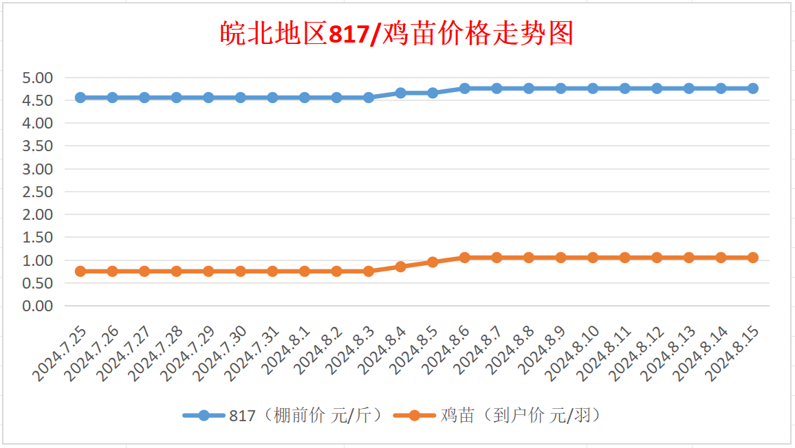皖北地区817/鸡苗价格走势图(来源:鸡病专业网)