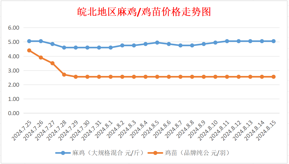 鸡病专业网独家信息:2024年8月15日皖北地区817-麻鸡行情最新走势