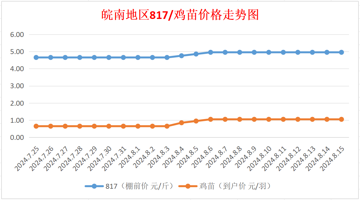 皖南地区817/鸡苗价格走势图(来源:鸡病专业网)