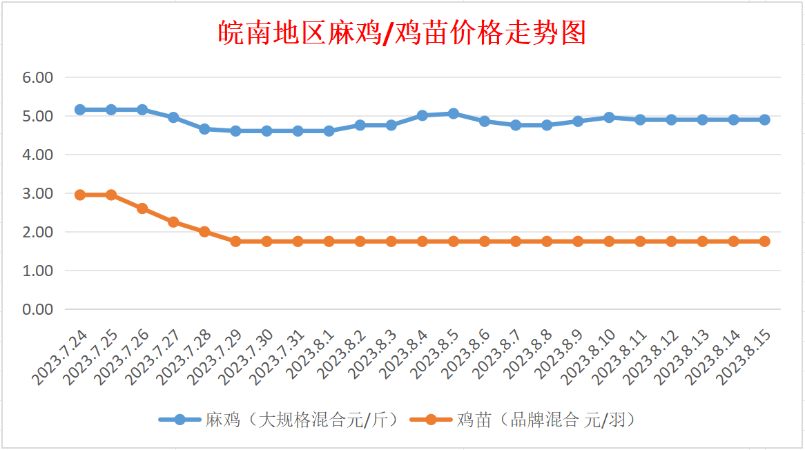鸡病专业网独家信息:2024年8月15日皖南地区817-麻鸡行情最新走势