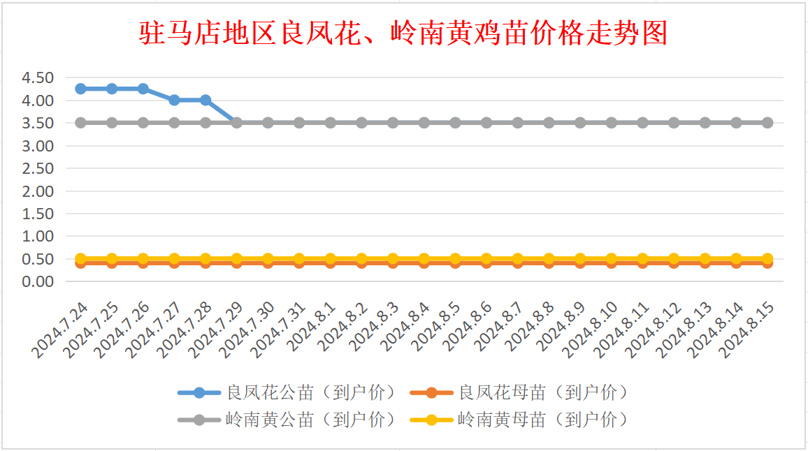 8月15日驻马店地区良凤花、岭南黄鸡苗价格行情