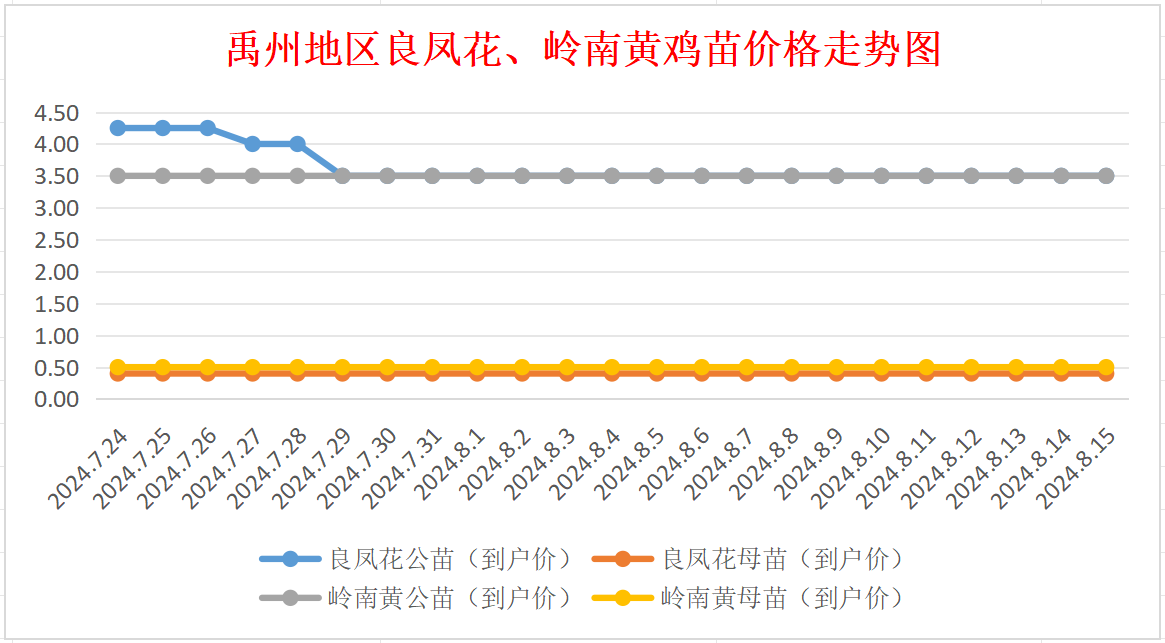 8月15日禹州地区良凤花、岭南黄鸡苗价格行情