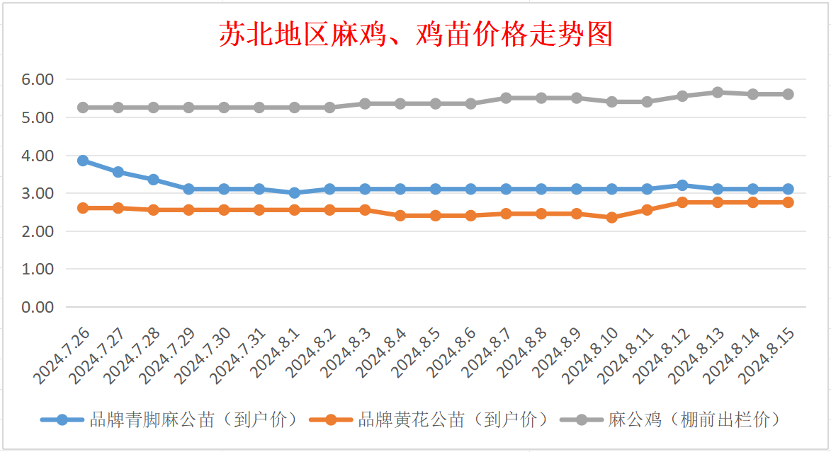 8月15日苏北地区麻鸡、鸡苗价格行情