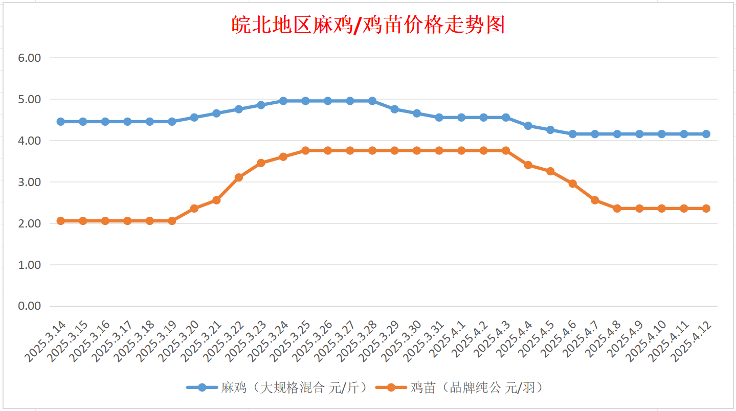 鸡病专业网独家信息:2025年4月12日皖北地区817-麻鸡行情最新走势