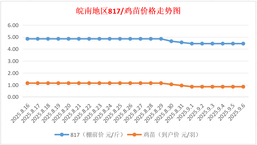 皖南地区817/鸡苗价格走势图(来源:鸡病专业网)