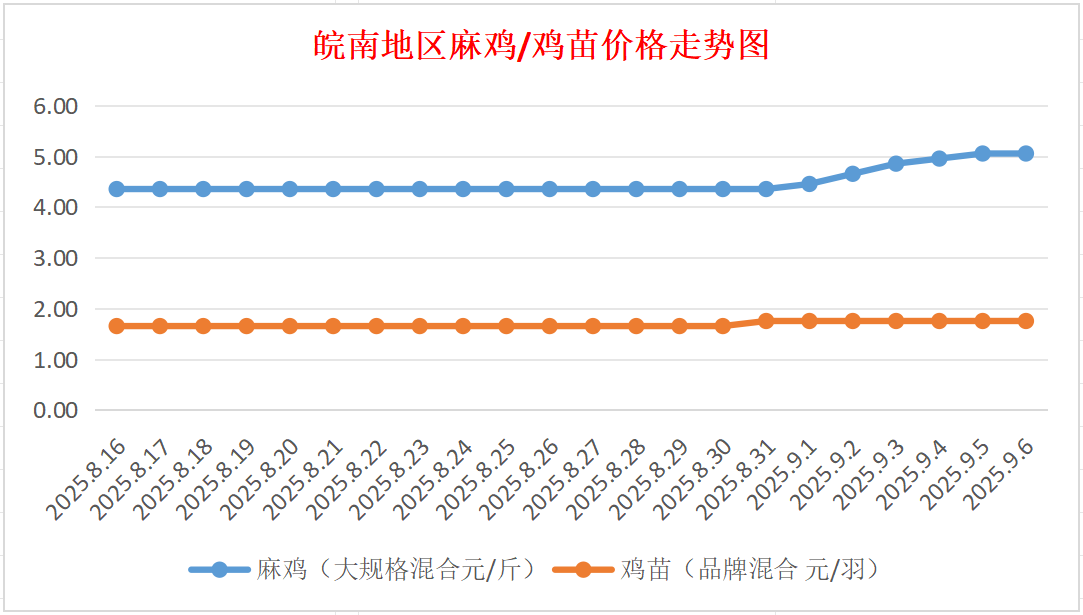 鸡病专业网独家信息:2025年9月6日皖南地区817-麻鸡行情最新走势