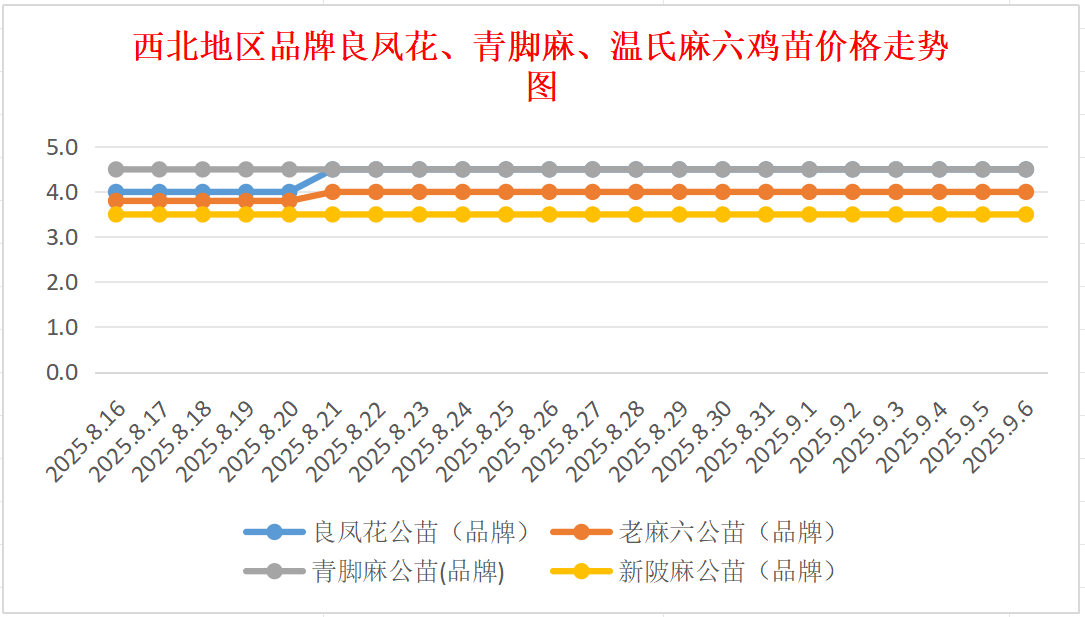 品牌新陂麻:价格稳定,到户价公苗4.50元/羽,稳。