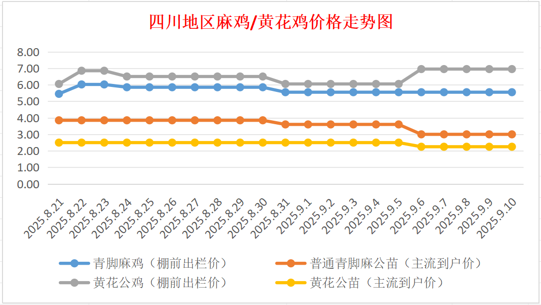 四川地区麻鸡/黄花公价格走势图(来源:鸡病专业网)