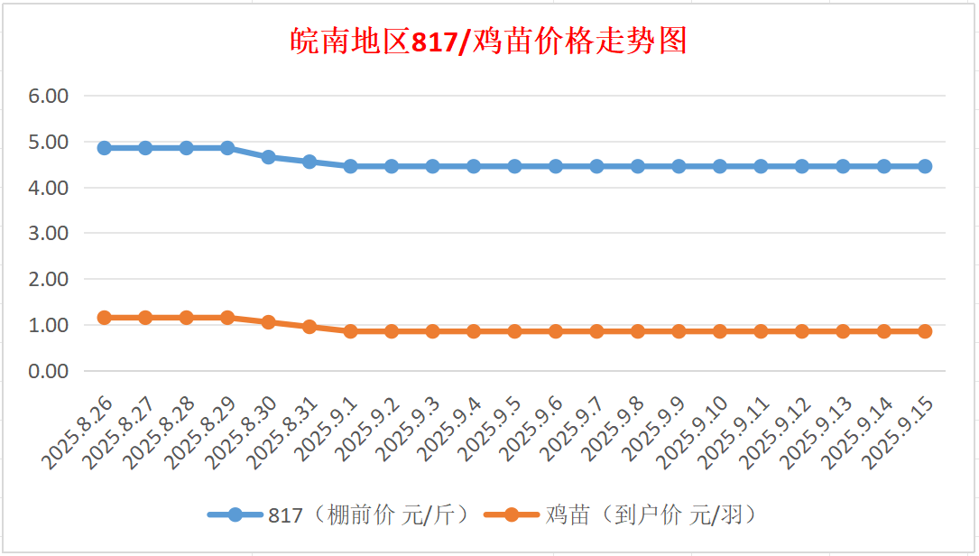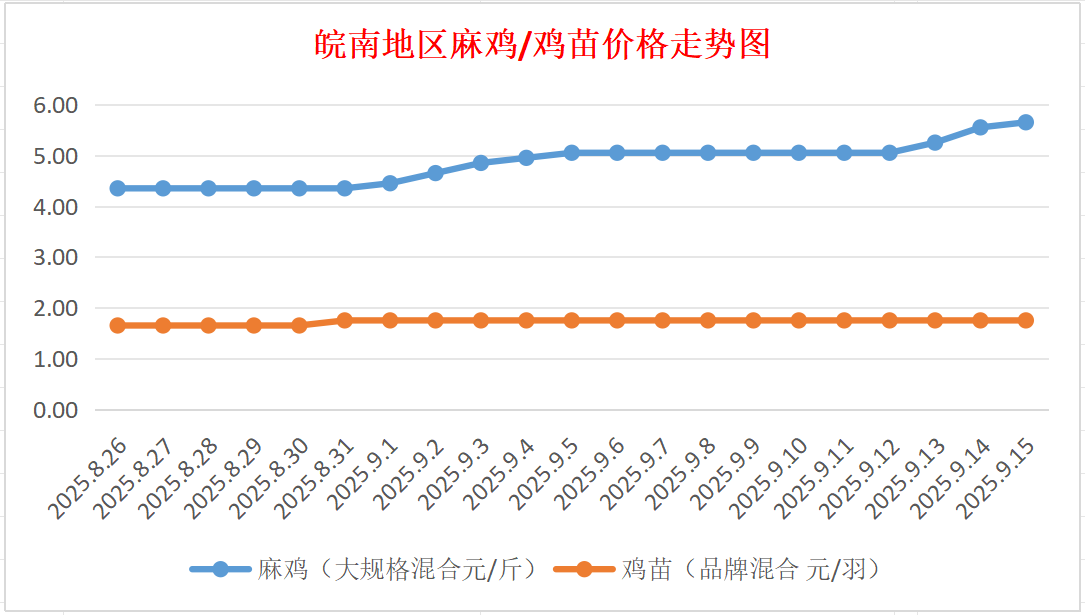 鸡病专业网独家信息:2025年9月15日皖南地区817-麻鸡行情最新走势