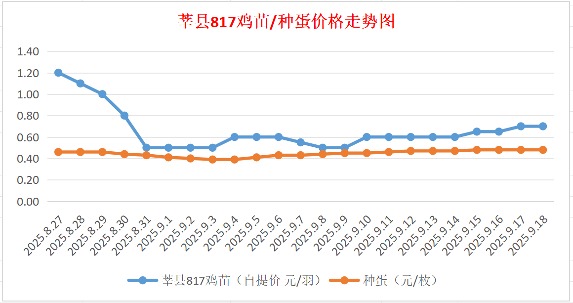 817鸡苗(混合):报价自提0.70元/羽。(走高五分)