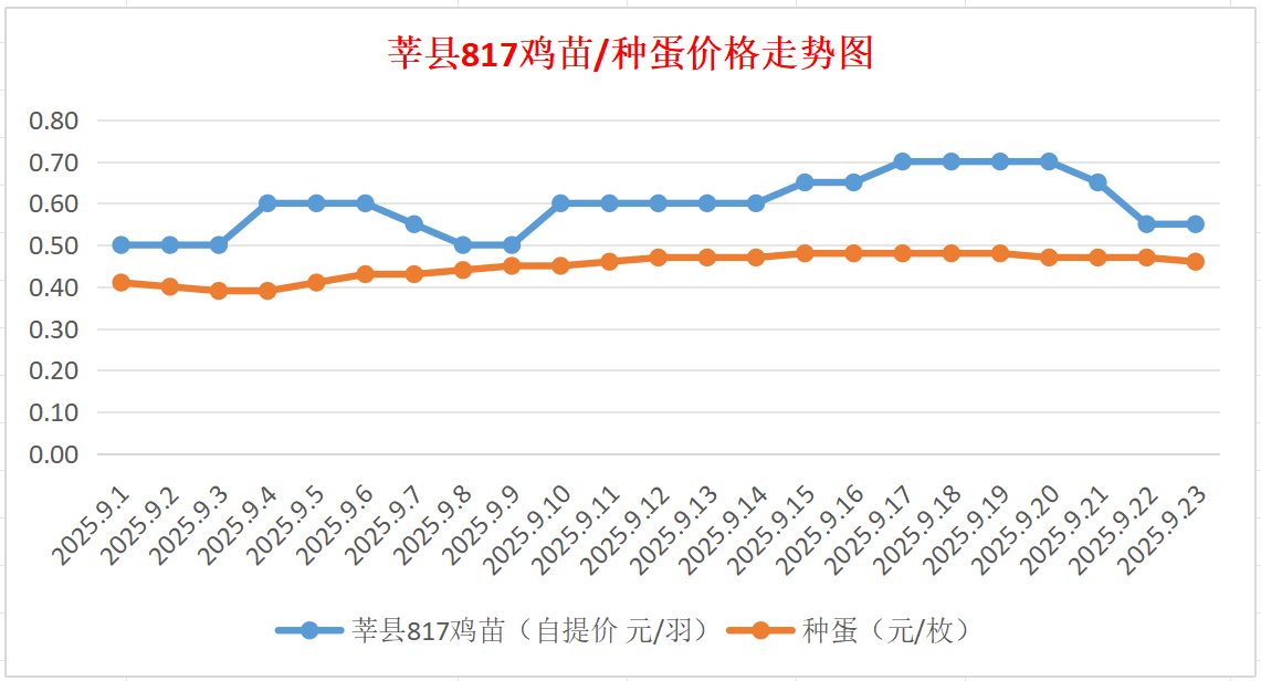 种蛋:昨日种蛋0.45-0.46元/枚。