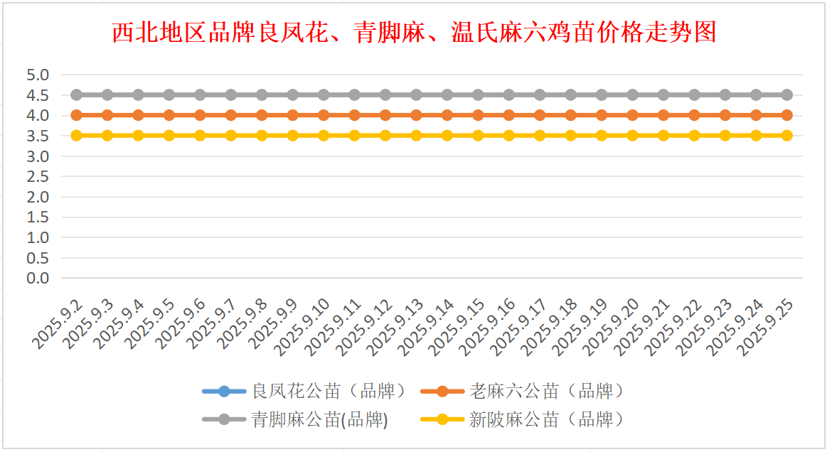 品牌新陂麻:价格稳定,到户价公苗4.50元/羽,稳。