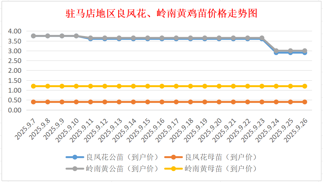 9月26日驻马店地区良凤花、岭南黄鸡苗价格行情