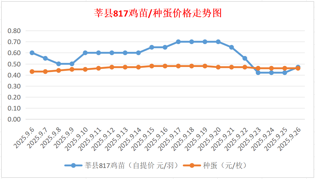 种蛋:昨日种蛋0.45-0.46元/枚。