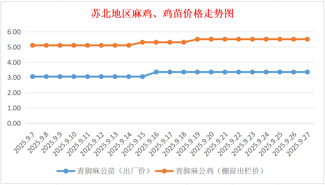 苏北地区麻鸡、鸡苗价格走势图(图源:鸡病专业网)