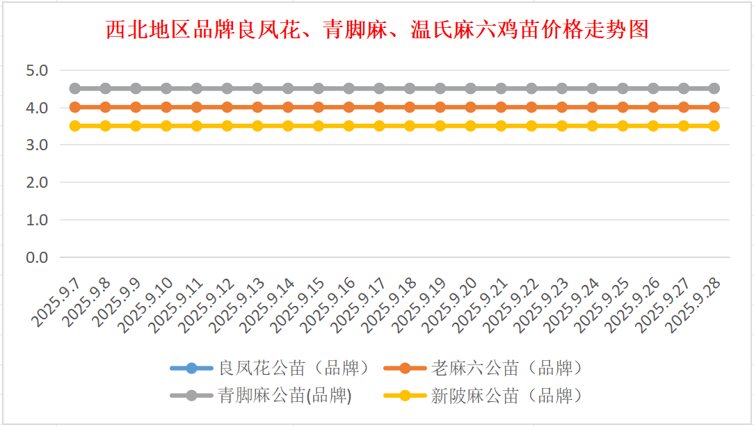 品牌新陂麻:价格稳定,到户价公苗4.50元/羽,稳。