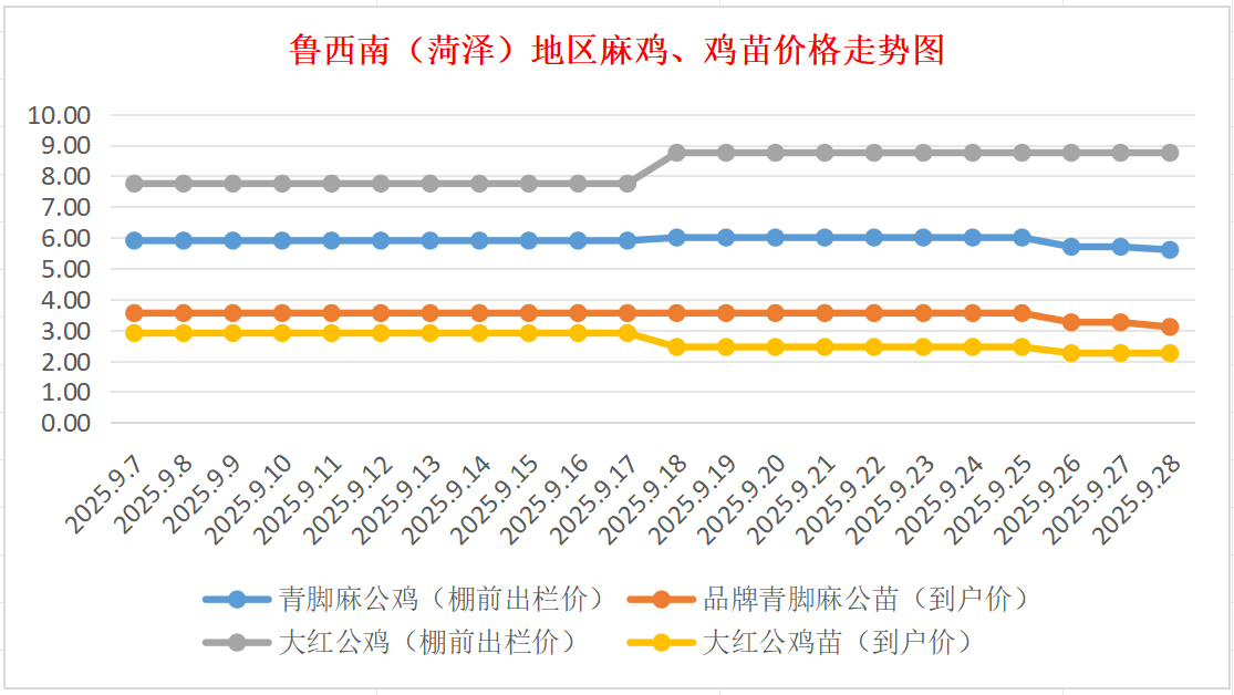 9月28日鲁西南(菏泽)地区麻鸡、鸡苗价格行情