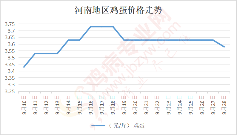 鸡病专业网消息:9月28日,河南郑州鸡蛋3.6元/斤,落;新密鸡蛋3.6元/斤,落;荥阳鸡蛋3.6元/斤,落;中牟鸡蛋3.6元/斤,落;周口鸡蛋3.55元/斤,落;商丘鸡蛋107-108元/30斤,落;鹤壁鸡蛋3.55元/斤,落;汝州鸡蛋3.55元/斤,落;开封鸡蛋107元/30斤,落;漯河鸡蛋3.55元/斤,落;漯河临颍鸡蛋3.55元/斤,落;许昌鸡蛋3.55元/斤,落;南阳鸡蛋3.55元/斤,落;南阳邓州鸡蛋3.55元/斤,落;新乡鸡蛋3.55元/斤,落;安阳鸡蛋3.55元/斤,落;新郑鸡蛋3.6元/斤,落;登封鸡蛋3.6元/斤,落;平顶山鸡蛋3.6元/斤,落;驻马店鸡蛋3-3.6元/斤,落;三门峡鸡蛋3.55元/斤,落;焦作鸡蛋3.55元/斤,落;信阳鸡蛋3.55元/斤,落;濮阳鸡蛋3.55元/斤,落。