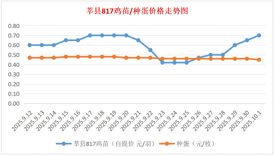 种蛋:昨日种蛋0.44-0.45元/枚。