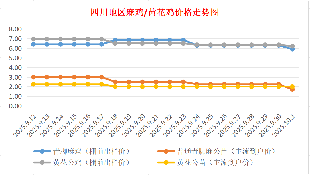 10月1日四川地区麻鸡、黄花公价格行情