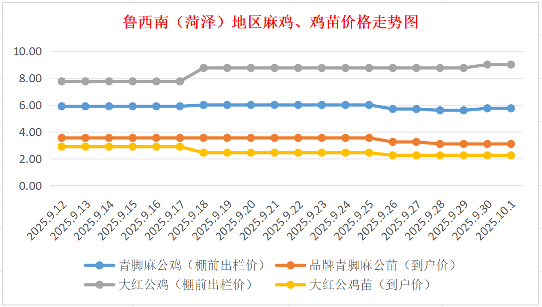10月1日鲁西南(菏泽)地区麻鸡、鸡苗价格行情