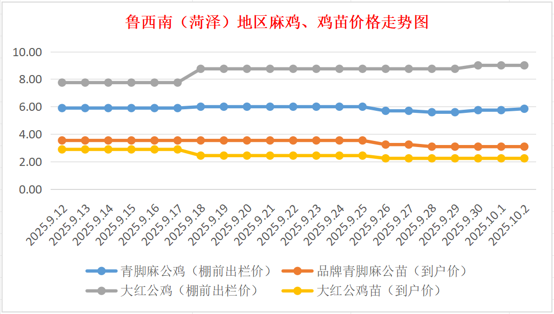 10月2日鲁西南(菏泽)地区麻鸡、鸡苗价格行情
