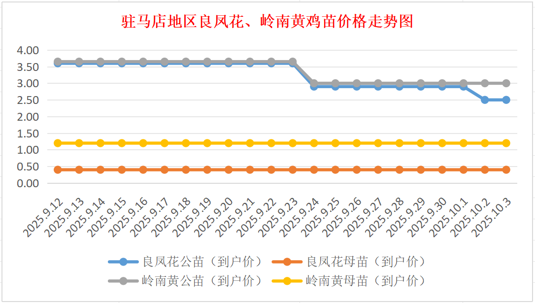 10月3日驻马店地区良凤花、岭南黄鸡苗价格行情