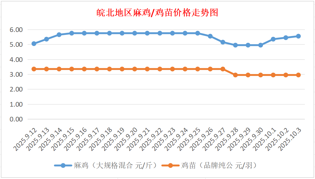 鸡病专业网独家信息:2025年10月3日皖北地区817-麻鸡行情最新走势