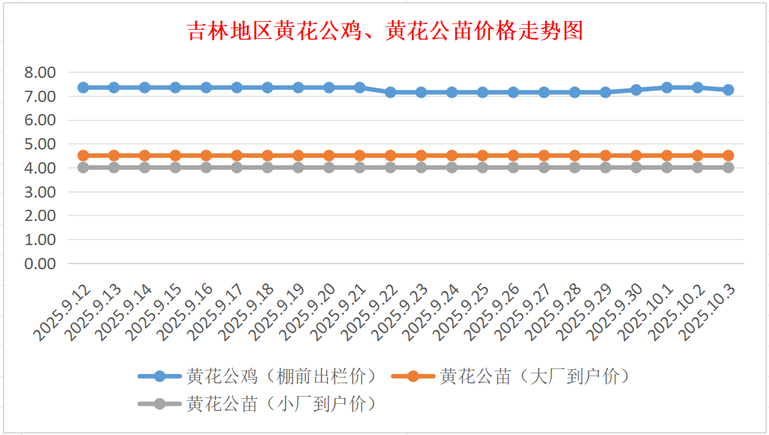10月3日吉林黄花公鸡、鸡苗价格行情