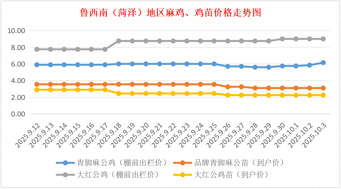 10月3日鲁西南(菏泽)地区麻鸡、鸡苗价格行情