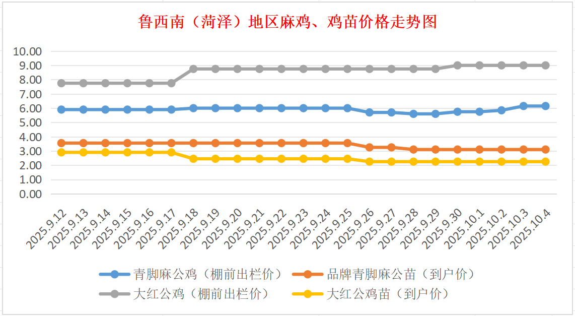 10月4日鲁西南(菏泽)地区麻鸡、鸡苗价格行情