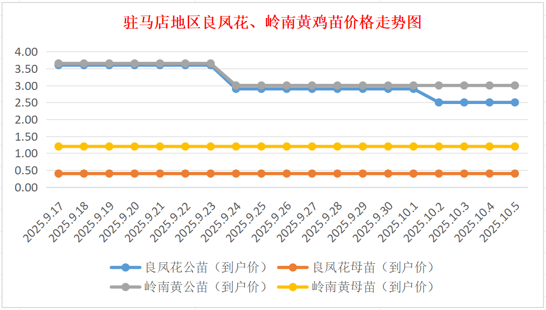 10月5日驻马店地区良凤花、岭南黄鸡苗价格行情