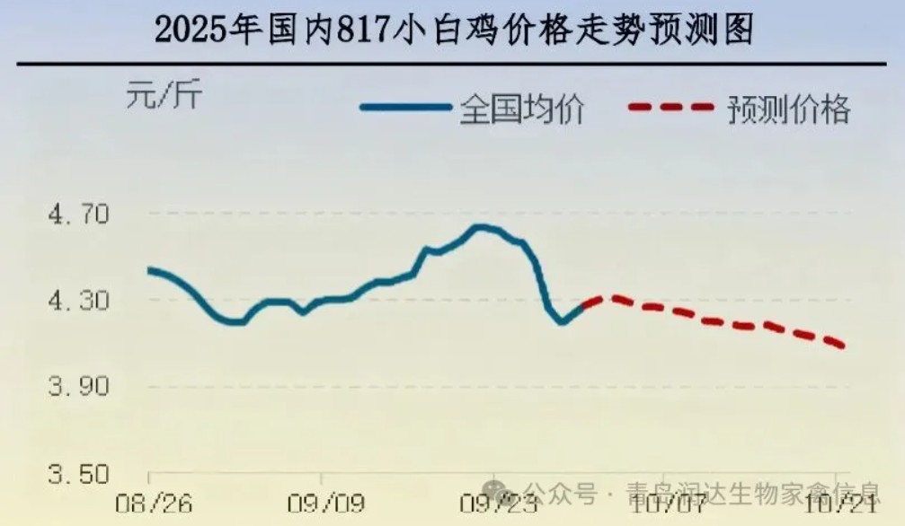 双节假期后,苗量供应不大,养殖户补栏心态趋于平稳,但毛鸡价格或偏弱运行,届时鸡苗价格或走强,但涨幅有限。预计未来三周817小白鸡苗价格先稳后涨。
