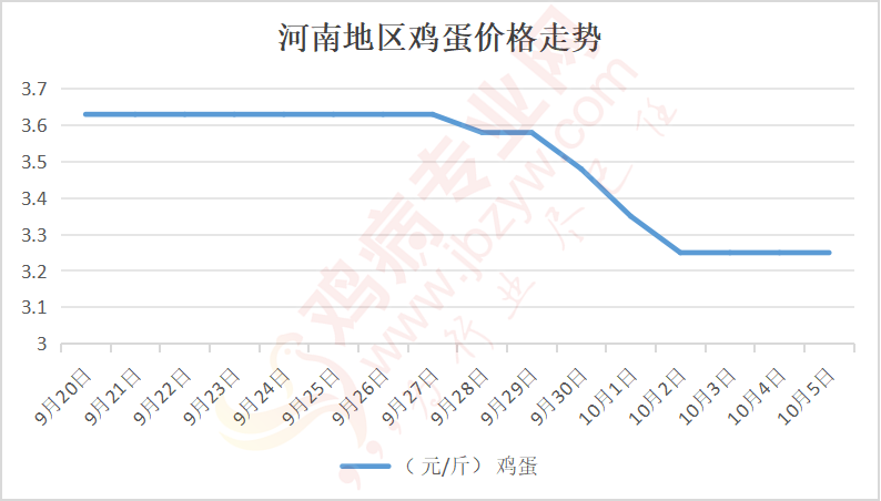 鸡病专业网消息:10月5日,河南郑州鸡蛋3.3元/斤,稳;新密鸡蛋3.3元/斤,稳;荥阳鸡蛋3.3元/斤,稳;中牟鸡蛋3.3元/斤,稳;周口鸡蛋3.2元/斤,稳;商丘鸡蛋97元/30斤,稳;鹤壁鸡蛋3.2元/斤,稳;汝州鸡蛋3.2元/斤,稳;开封鸡蛋97元/30斤,稳;漯河鸡蛋3.2元/斤,稳;漯河临颍鸡蛋3.2元/斤,稳;许昌鸡蛋3.2元/斤,稳;南阳鸡蛋3.2元/斤,稳;南阳邓州鸡蛋3.2元/斤,稳;新乡鸡蛋3.2元/斤,稳;安阳鸡蛋3.2元/斤,稳;新郑鸡蛋3.3元/斤,稳;登封鸡蛋3.3元/斤,稳;平顶山鸡蛋3.25元/斤,稳;驻马店鸡蛋3.25元/斤,稳;三门峡鸡蛋3.25元/斤,稳;焦作鸡蛋3.2元/斤,稳;信阳鸡蛋3.2元/斤,稳;濮阳鸡蛋3.2元/斤,稳。