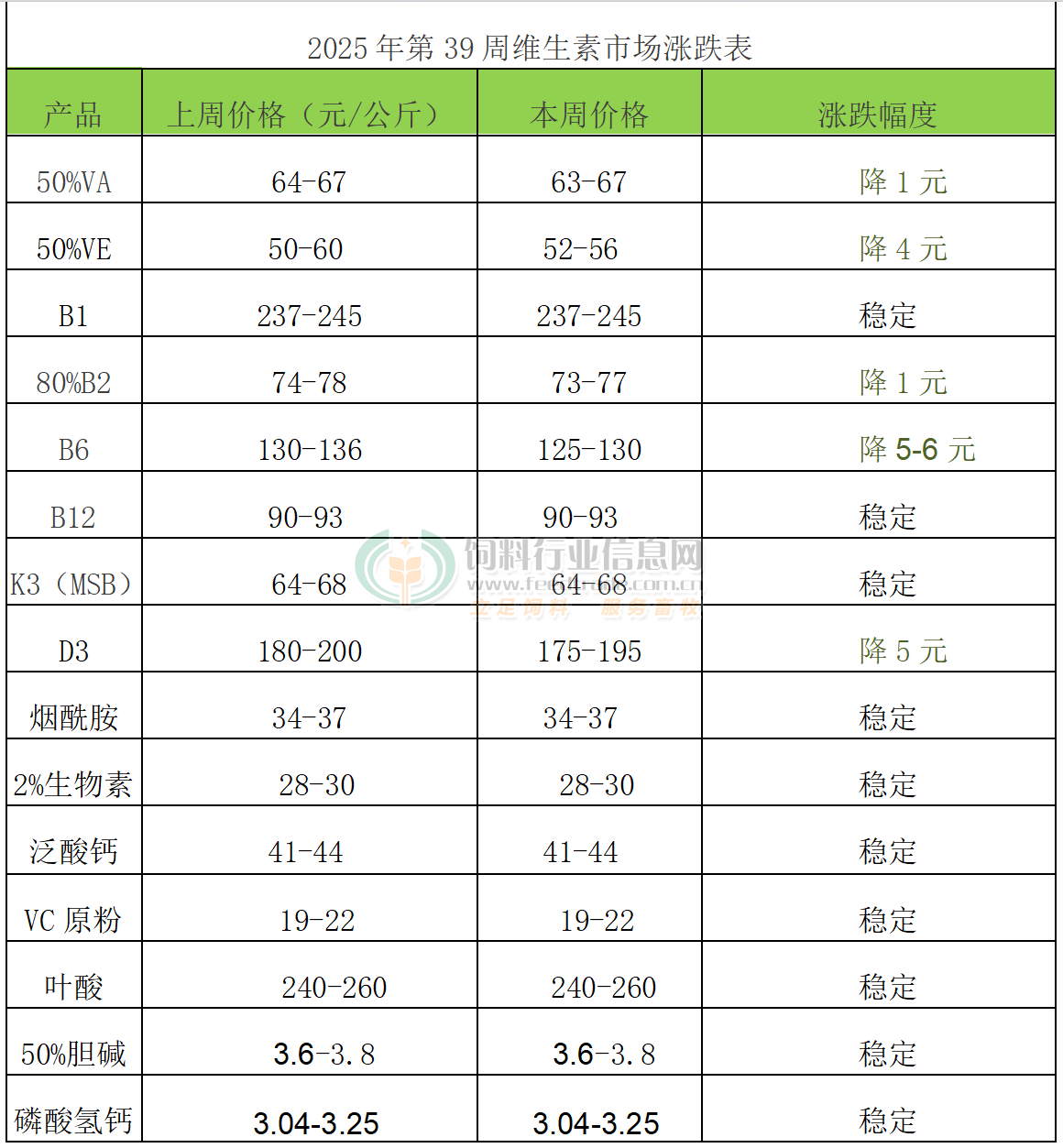 2025年第39周维生素市场动态