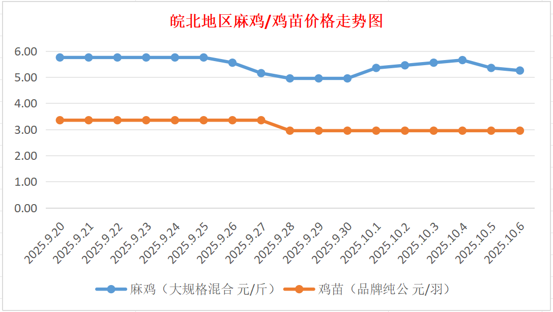 鸡病专业网独家信息:2025年10月6日皖北地区817-麻鸡行情最新走势