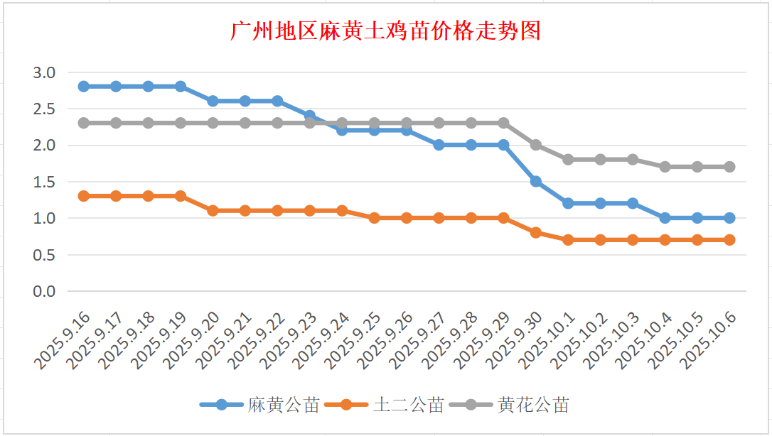 10月6日广州地区麻、黄、土鸡苗价格行情