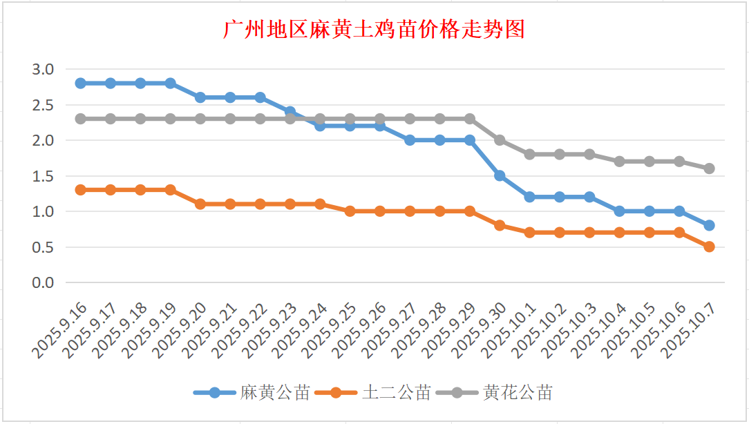 10月7日广州地区麻、黄、土鸡苗价格行情