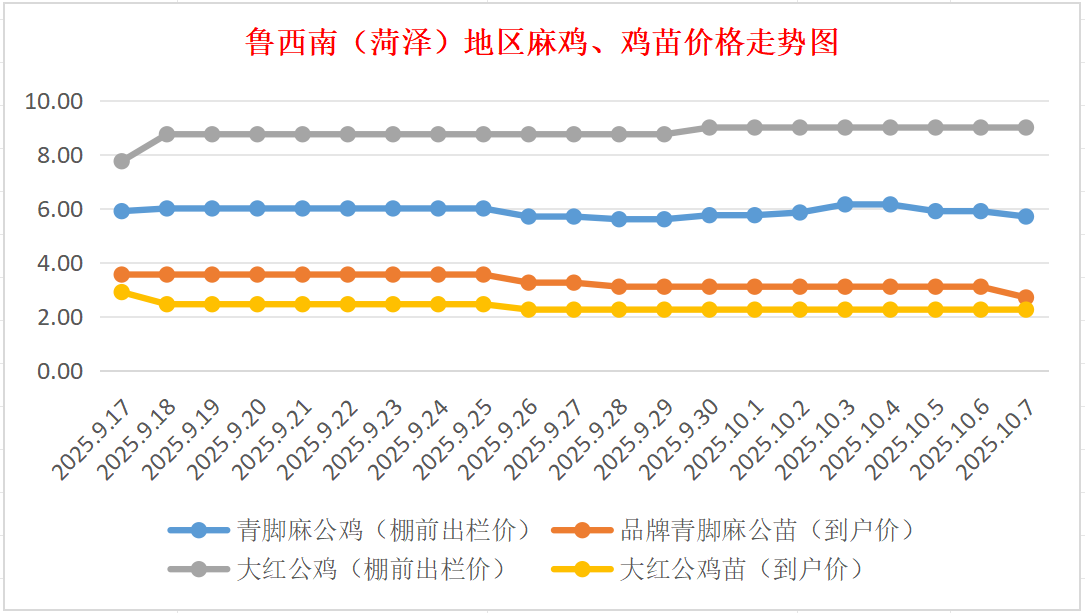 10月7日鲁西南(菏泽)地区麻鸡、鸡苗价格行情