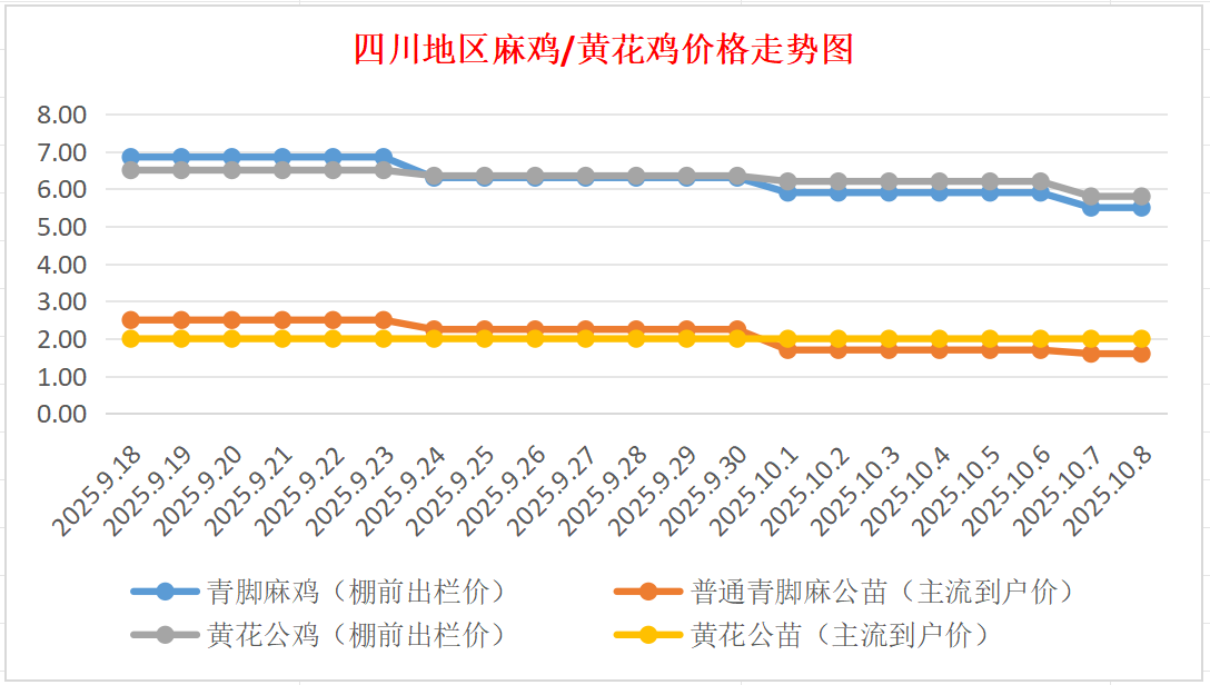 四川地区麻鸡/黄花公价格走势图(来源:鸡病专业网)