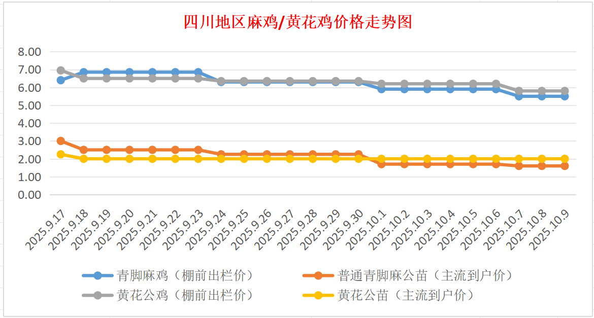 四川地区麻鸡/黄花公价格走势图(来源:鸡病专业网)