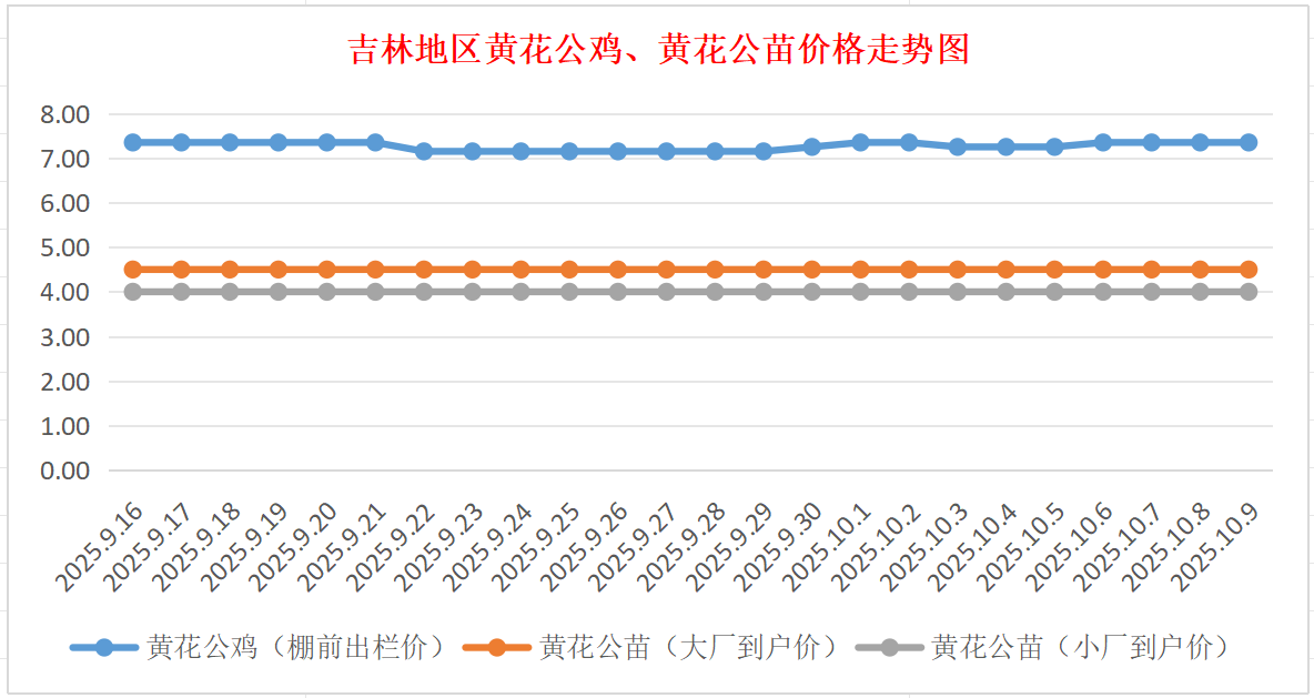 10月9日吉林黄花公鸡、鸡苗价格行情