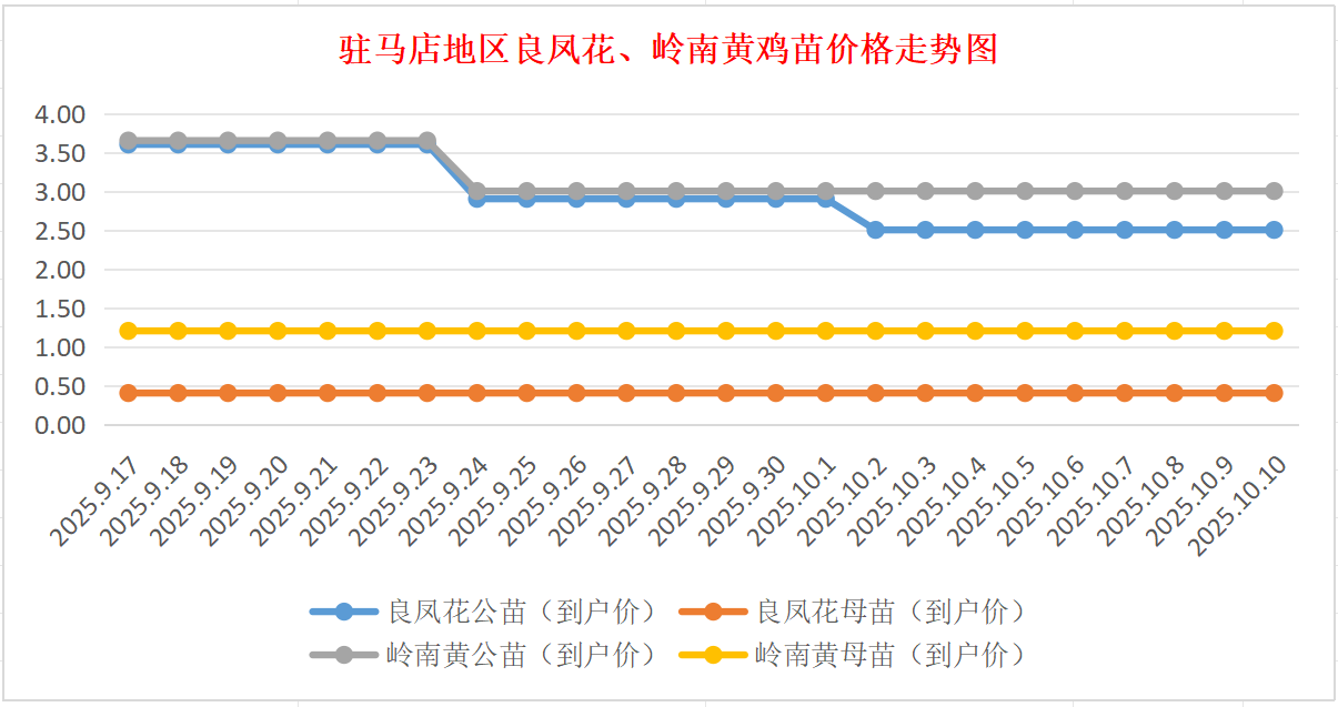 10月10日驻马店地区良凤花、岭南黄鸡苗价格行情