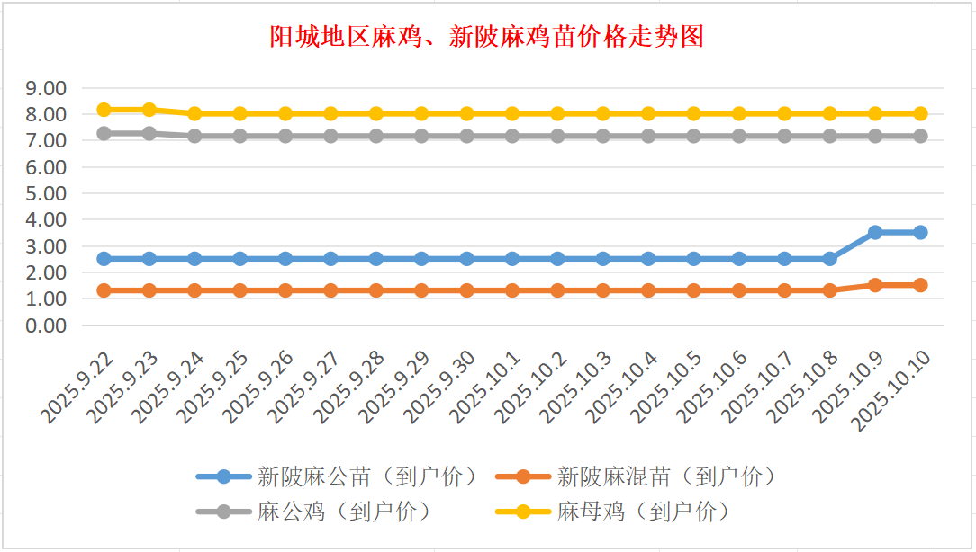 阳城地区麻鸡、新陂麻鸡苗价格走势图(来源:鸡病专业网)