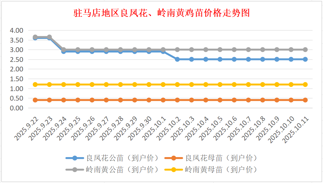 10月11日驻马店地区良凤花、岭南黄鸡苗价格行情