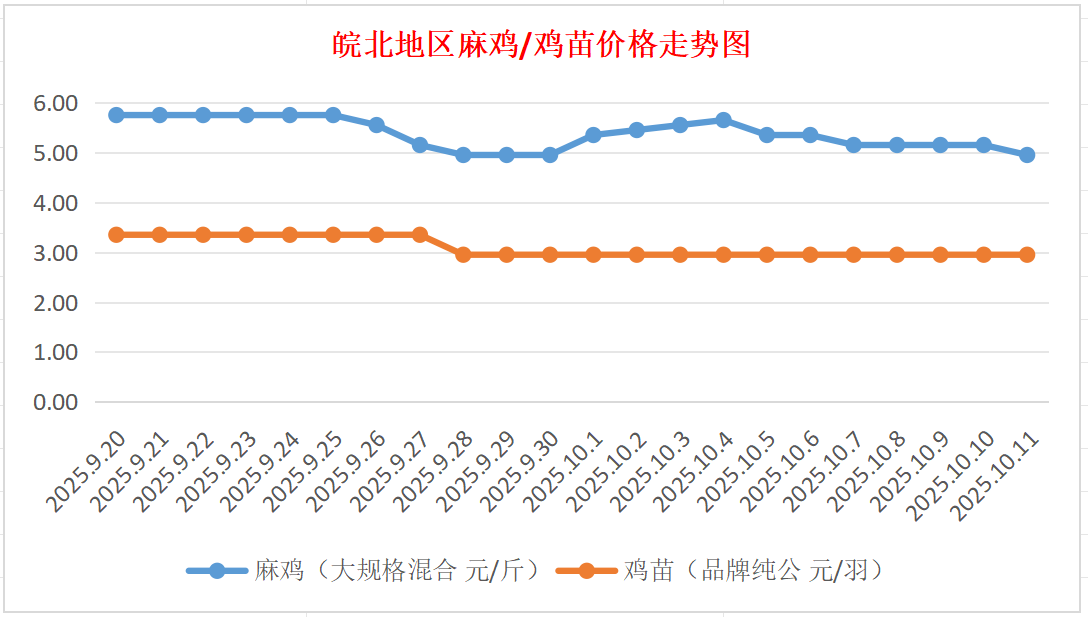 鸡病专业网独家信息:2025年10月11日皖北地区817-麻鸡行情最新走势