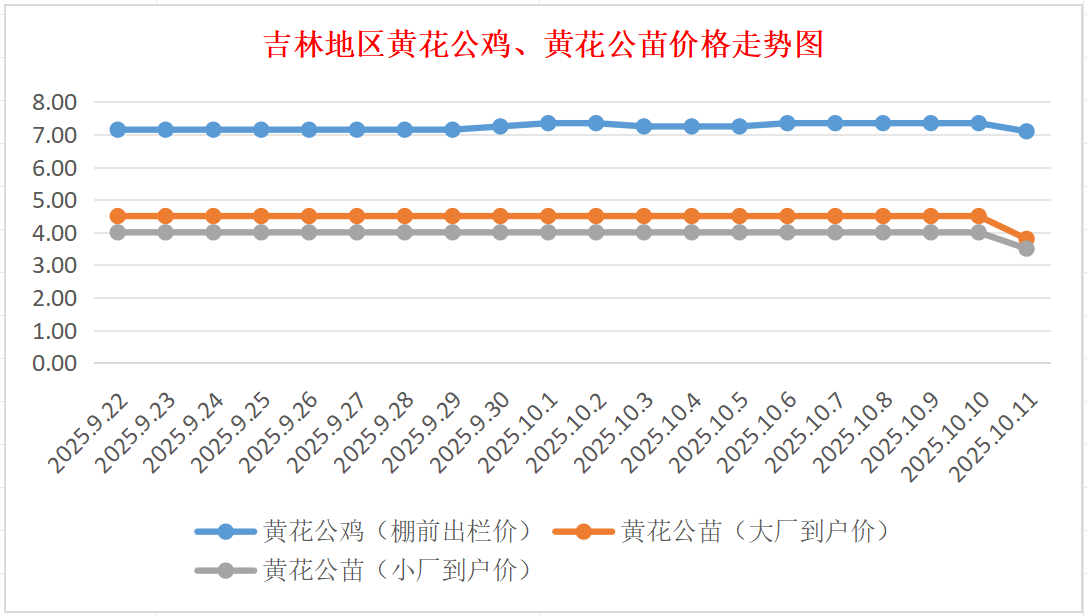 10月11日吉林黄花公鸡、鸡苗价格行情