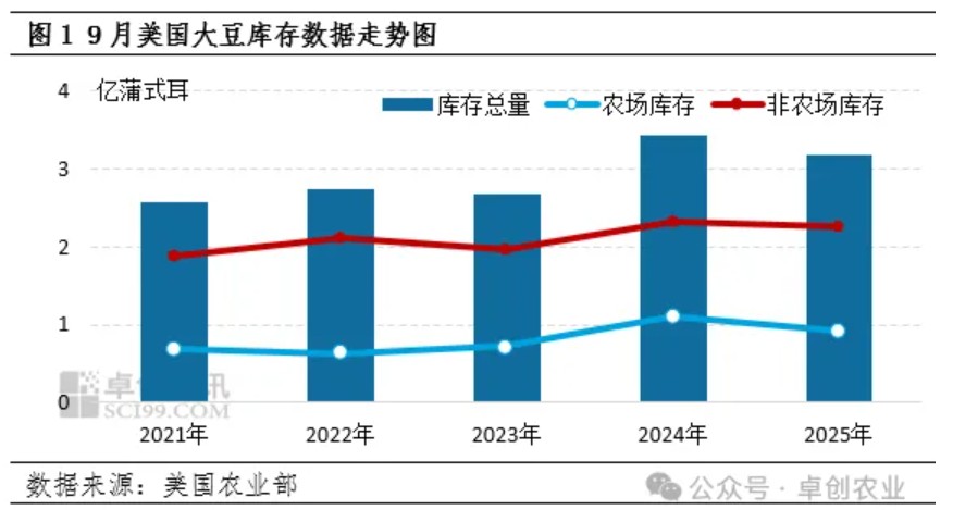 根据美国农业部的季度报告数据显示,截至9月1日,美国旧作大豆库存总量为3.16亿蒲式耳,市场预期为3.23亿蒲式耳,去年同期为3.42亿蒲式耳。其中农场库存量为9150万蒲式耳,同比下降18%;非农场库存量为2.25亿蒲式耳,同比下降3%。大豆消费量为6.91亿蒲式耳,同比增加10%。季度库存数据低于预期,对美豆期货价格形成利多提振。