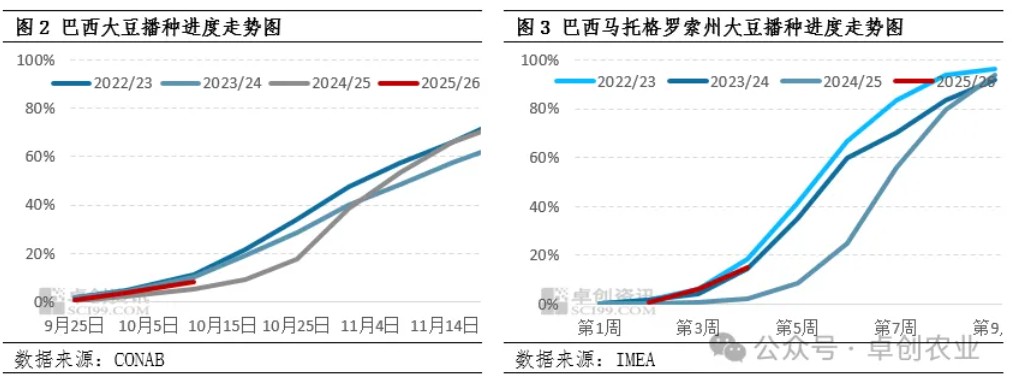 由于美国政府停摆,导致美国农业部许多重要大豆数据暂停发布。市场将基本面的数据驱动重点转向南美市场,市场主要关注巴西大豆的播种进度和产量预估。