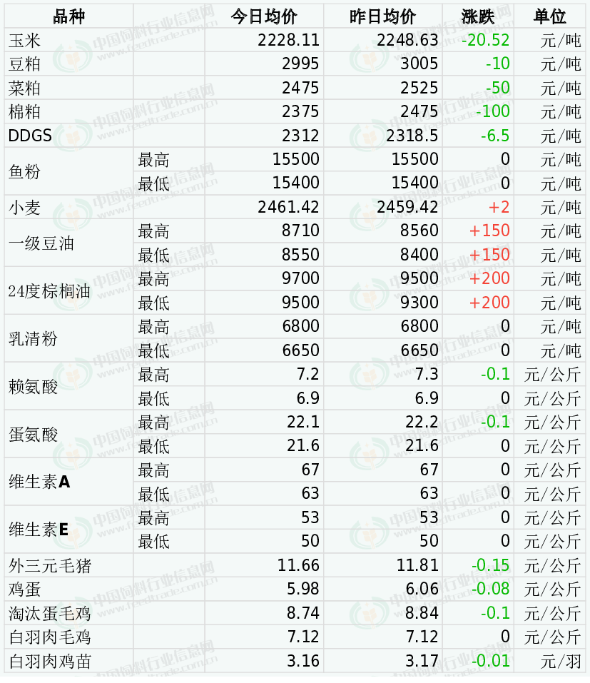 白羽肉毛鸡价格平稳。市场供应较为充足,屠企基本处于满宰状态,但冻品市场走货欠佳,需求端表现不佳,无法对价格起到有力的支撑作用,供需双向利空,短期内市场供需状况未得到明显改善,预计短期肉鸡价格窄幅震荡,反弹乏力。今日主产区山东白羽肉毛鸡均价6.85元/公斤,与昨日价格持平;辽宁均价7.00元/公斤,与昨日价格持平;主销区江苏均价8.08元/公斤,与昨日价格持平。